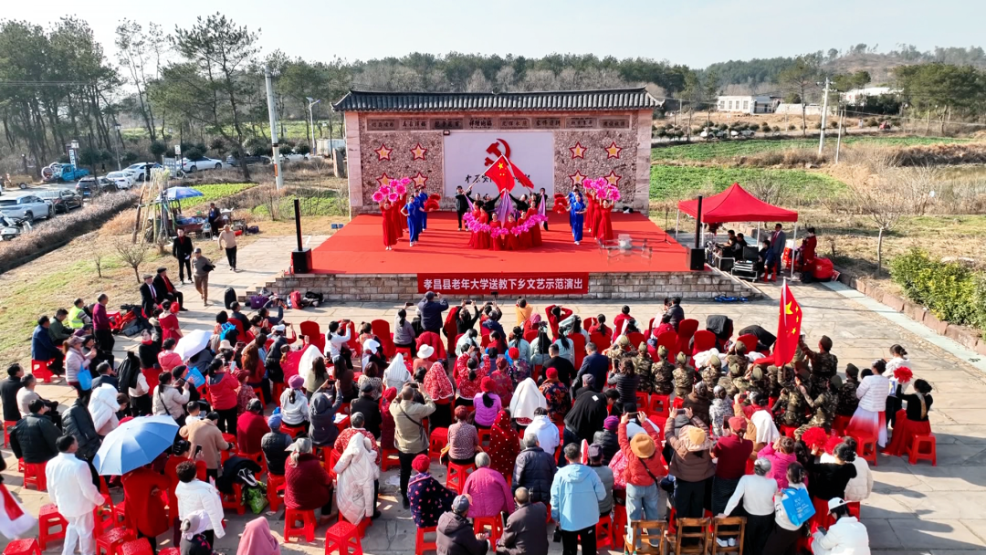 为丰富农村群众精神文化生活,传承优秀传统文化,凝聚奋进力量,1月14日,一场以“戏韵下乡 爱满冬日”为主题的文化惠民活动,在具有千年石艺传承和红色革命历史的孝昌县王店镇磨山村火热上演,为当地群众送上了一份丰盛的文化大礼和新春暖意。