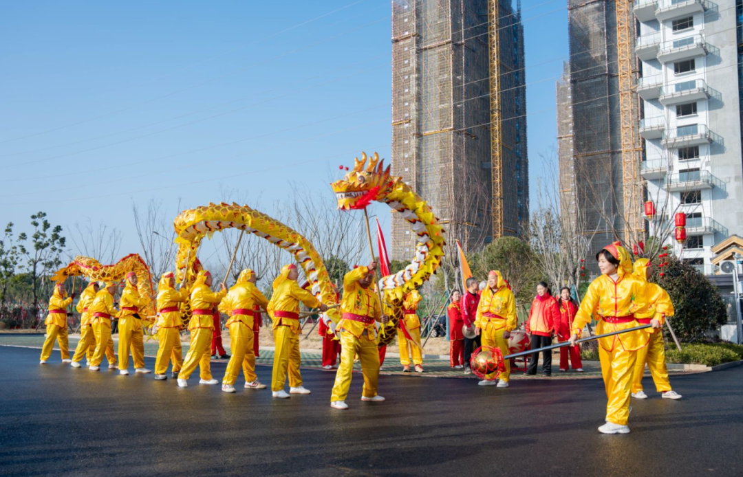 全天候的舞龙舞狮、乐队演奏穿插其间