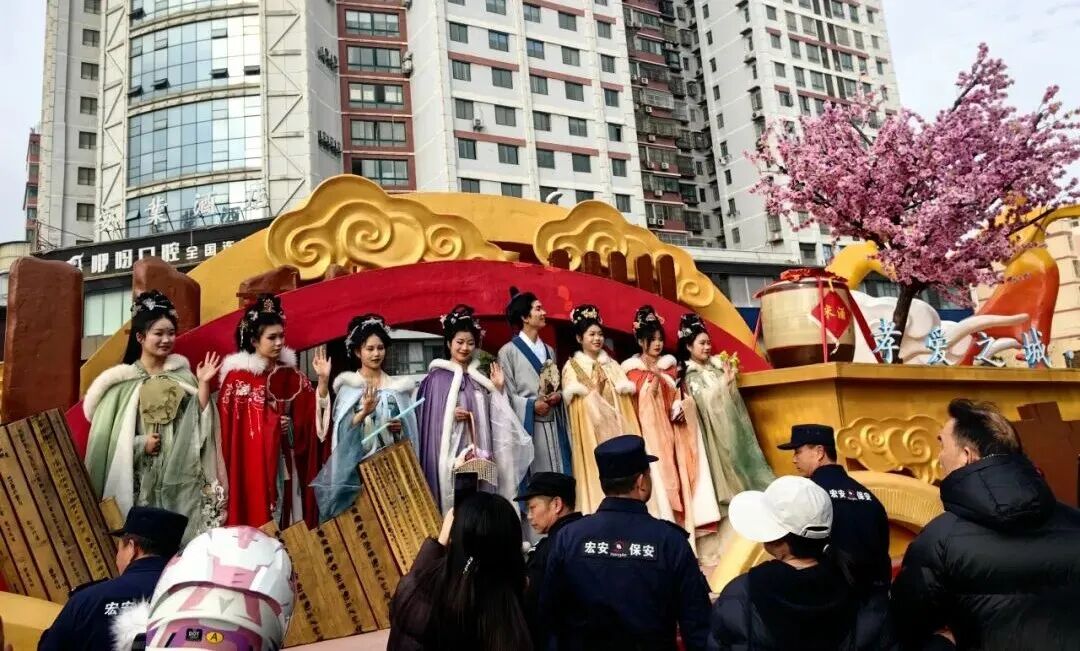 花车所到之处,皆是欢乐的海洋!市民们争相拍照,喜庆的气氛播撒到城市的每一个角落。